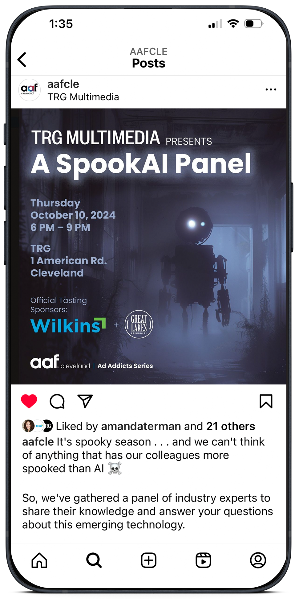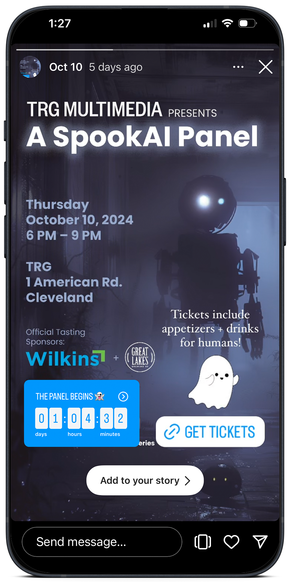 A SpookAI Panel - I used Midjourney to create the key visual for social posts, email, and event collateral.